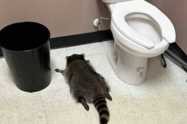 Rondzwervende wasbeer in Virginia dronken in een slijterij en viel in slaap in het toilet